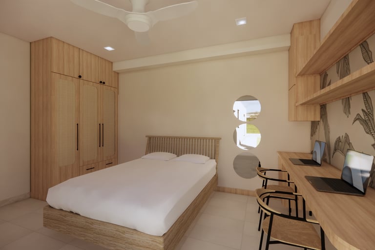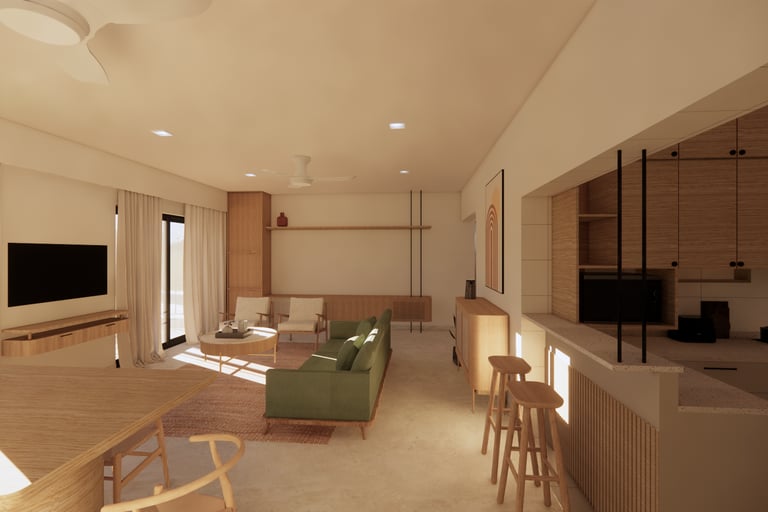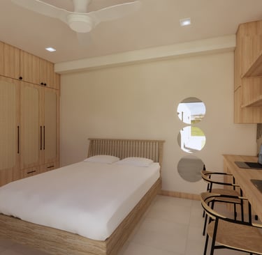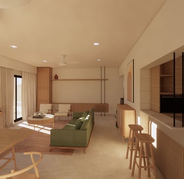 The Curves of Oak project features a thoughtfully crafted 4BHK home for a family that recently moved from Delhi to North Bangalore. The design concept focuses on minimalist living with an emphasis on elegance, serenity, and functionality. The family, passionate about simplicity, chose to embrace a contemporary style with a subtle, muted color palette, creating a peaceful sanctuary away from the bustling city life. The use of soft neutrals, and warm tones establishes a calm and expansive feel throughout the home. What sets this project apart is the gentle integration of curves, adding a sense of softness and fluidity to the otherwise structured spaces. The incorporation of natural materials such as oak wood and metal enhances the home's warmth and texture, creating an inviting atmosphere. All the furniture used in this project are custom designed by Studio Anvaya to suit the clients requirements and to fit the project's design philosophy.