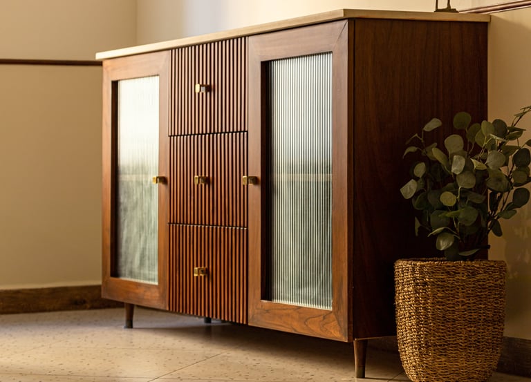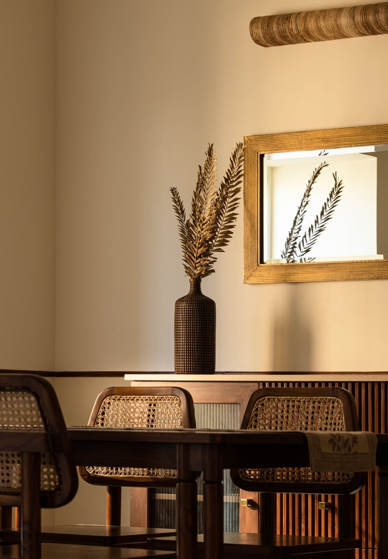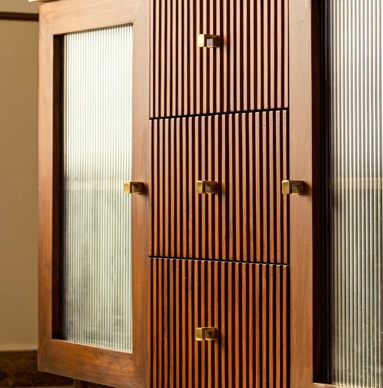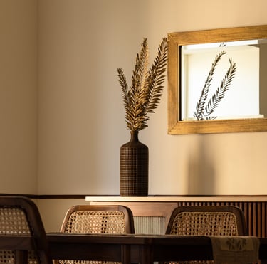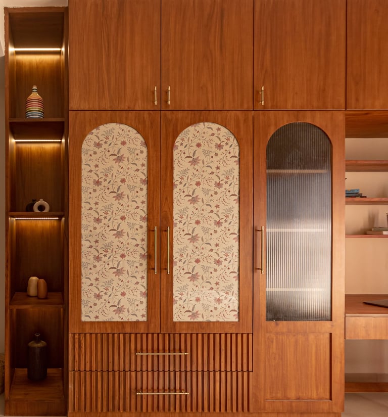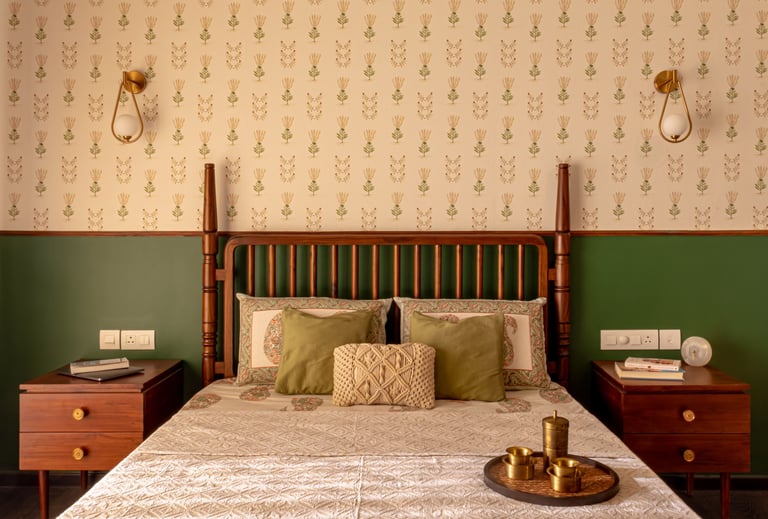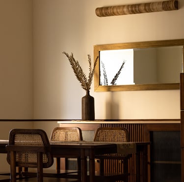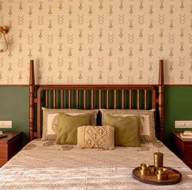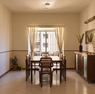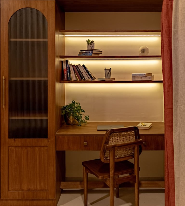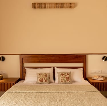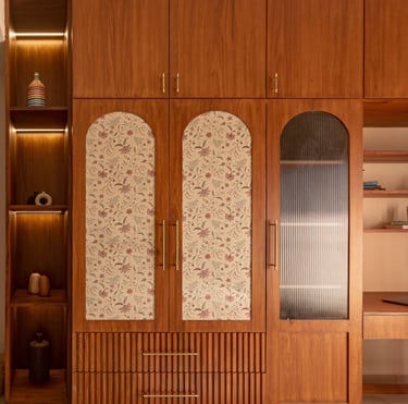 Project 4107 is a thoughtfully designed 3BHK home created for an NRI couple, offering them a serene and welcoming retreat during their occasional visits. The brief was clear: to create a minimalistic yet functional space that feels like a true home away from home. The design emphasizes warmth, comfort, and a sense of calm through the careful use of natural materials, such as rich wood finishes, elegant rattan accents, and a soothing palette of warm hues. The color palette plays a key role in creating a warm and inviting atmosphere, with soft neutrals, earthy tones, and subtle accents that reflect the couple’s desire for comfort and relaxation. Every room is carefully curated to balance aesthetics with functional living, making the home both stylish and practical for their limited time spent in it.